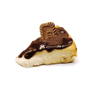 Cremosa y sedosa, con el sabor suave del queso horneado, cubierta con un irresistible toffee que aporta un toque dulce y caramelizado. Y una galleta Lotus con sobre la tarta y espolvoreada a su alrededor.